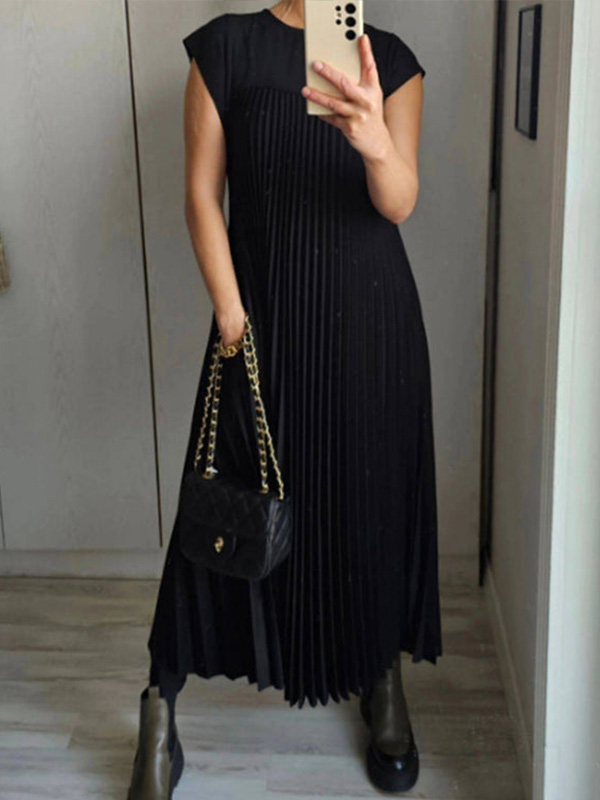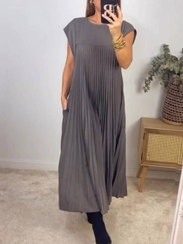 Timeless Elegance: Round Neck Casual Pleated Dress